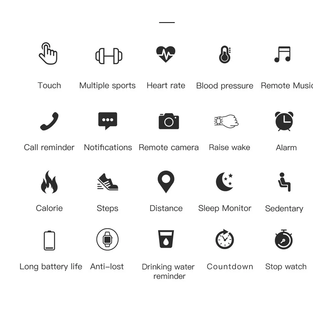 Other functions:Sleep monitor; Stopwatch; Remote control music; Alarm; Sedentary Reminder; Find your phone; Wrist bright screen