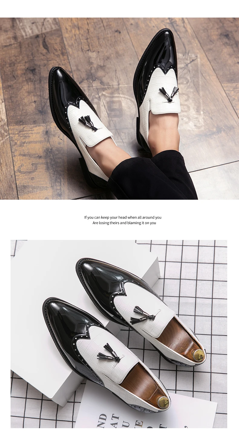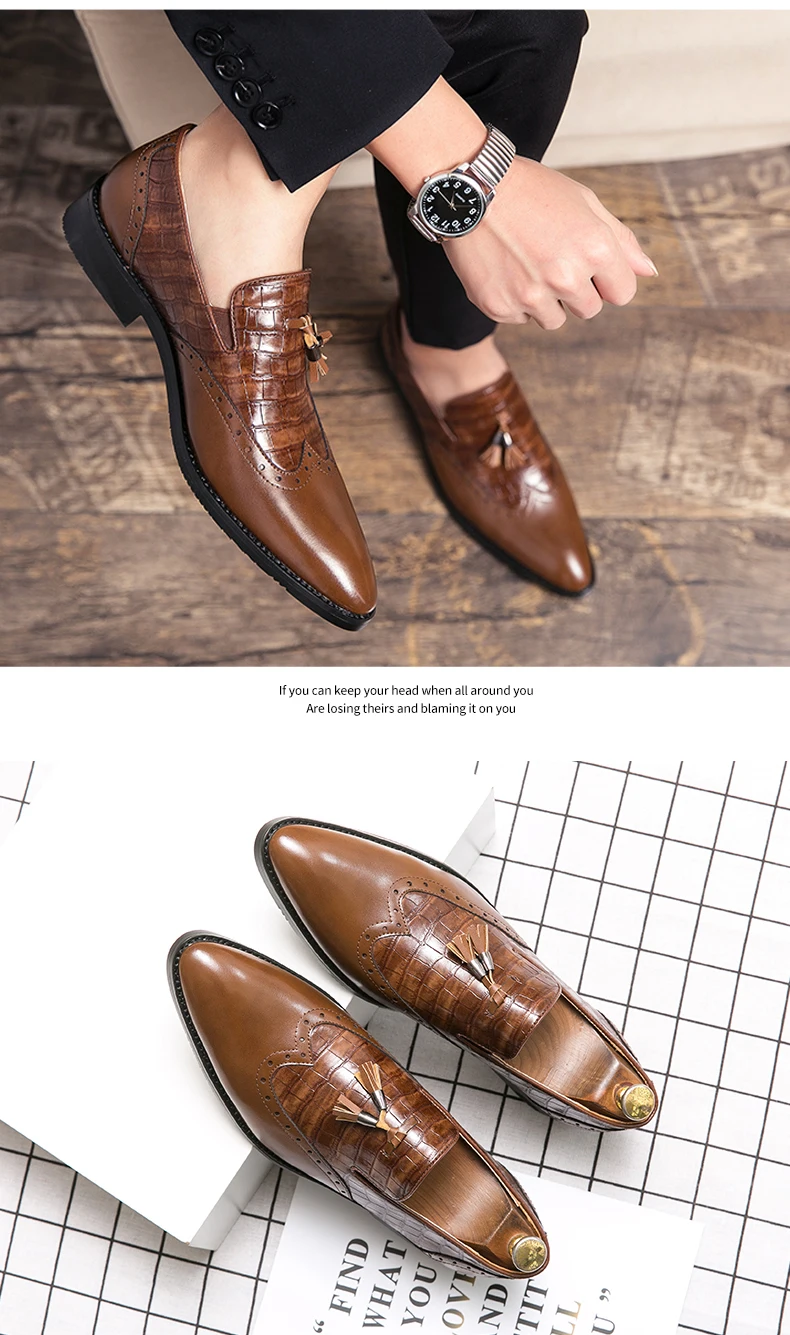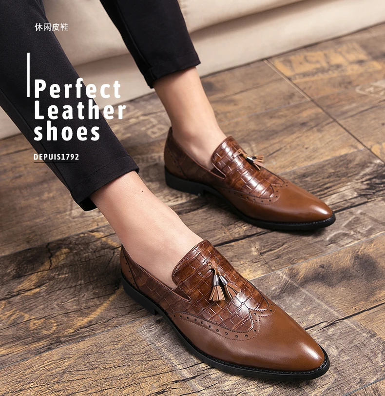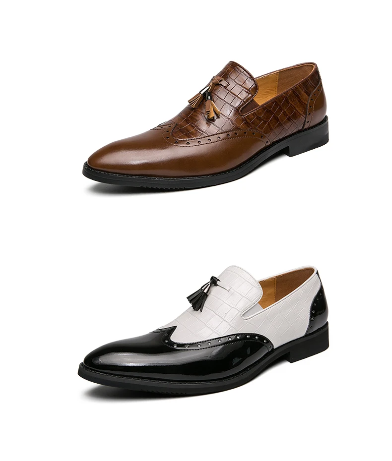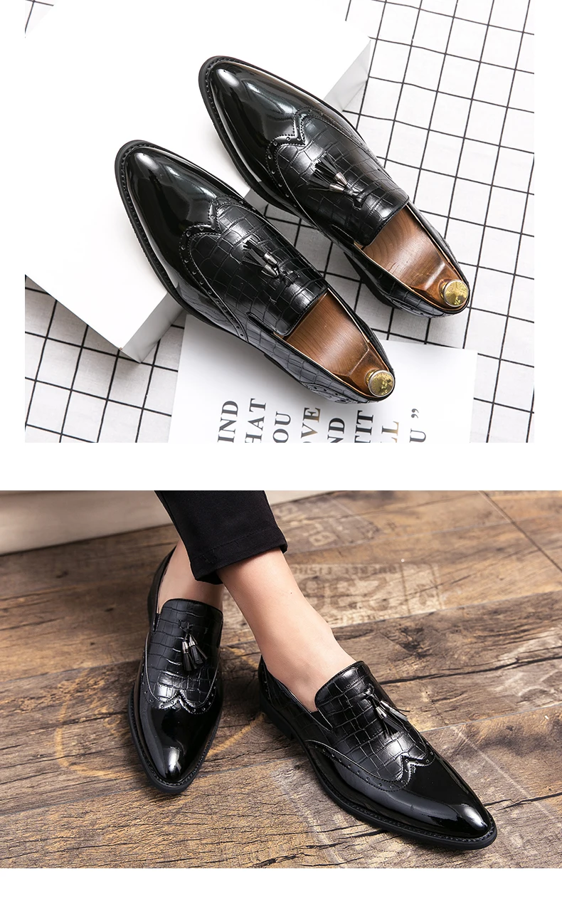 Большие размеры 38-48; Мужские броги в британском стиле; Модельные туфли-оксфорды; Мужская обувь из искусственной кожи в джентльменском стиле; Мужские лоферы на плоской подошве с кисточками; Zapatos Hombre