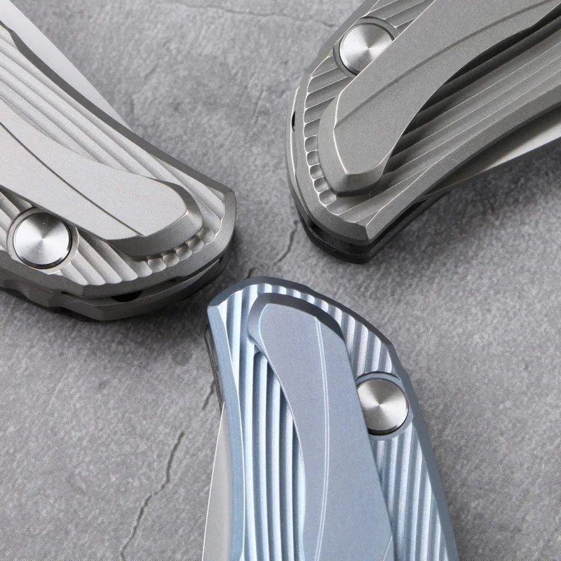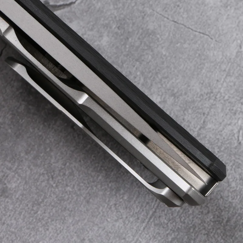Общая длина: 223 мм Длина клинка: 95 мм Длина ручки: 127 мм Толщина клинка: 4 мм Ширина клинка: 29 мм Обработка поверхности лезвия: мелкая мойка камня Система: Керамический шарикоподшипник двухрядный Твердость: 59-60HRC Вес нетто: 113 г (± 2 г) Материал клинка: D2 (100% истинный D2, можно протестировать) Материал рукоятки: TC4 Титан + углеродное волокно Поверхность ручки: камень промытый темно-серый светильник-серый, Анодированный синий Другое: нейлоновая куртка на молнии