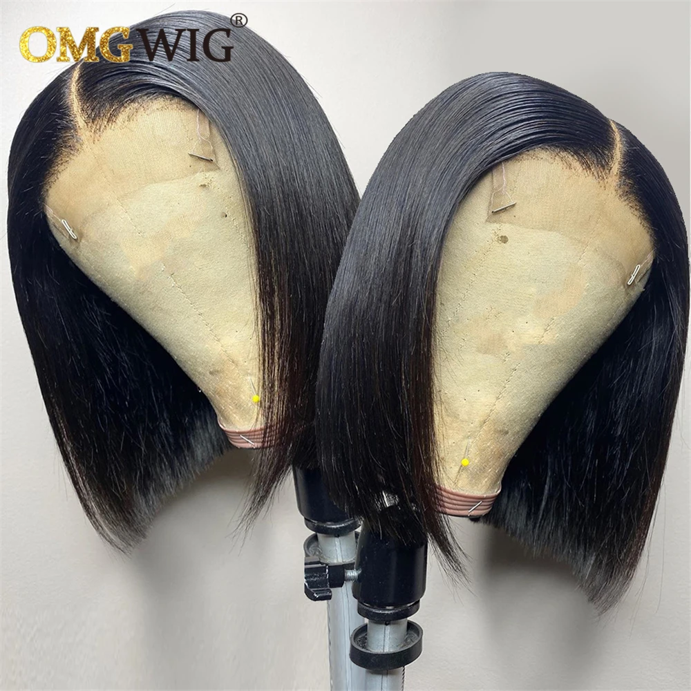 4X4 закрытие парик 250% тупой прямой Боб короткий Pixie Cut HD кружева фронта человеческих волос парики для черных женщин Remy бразильский предварительно сорвал
