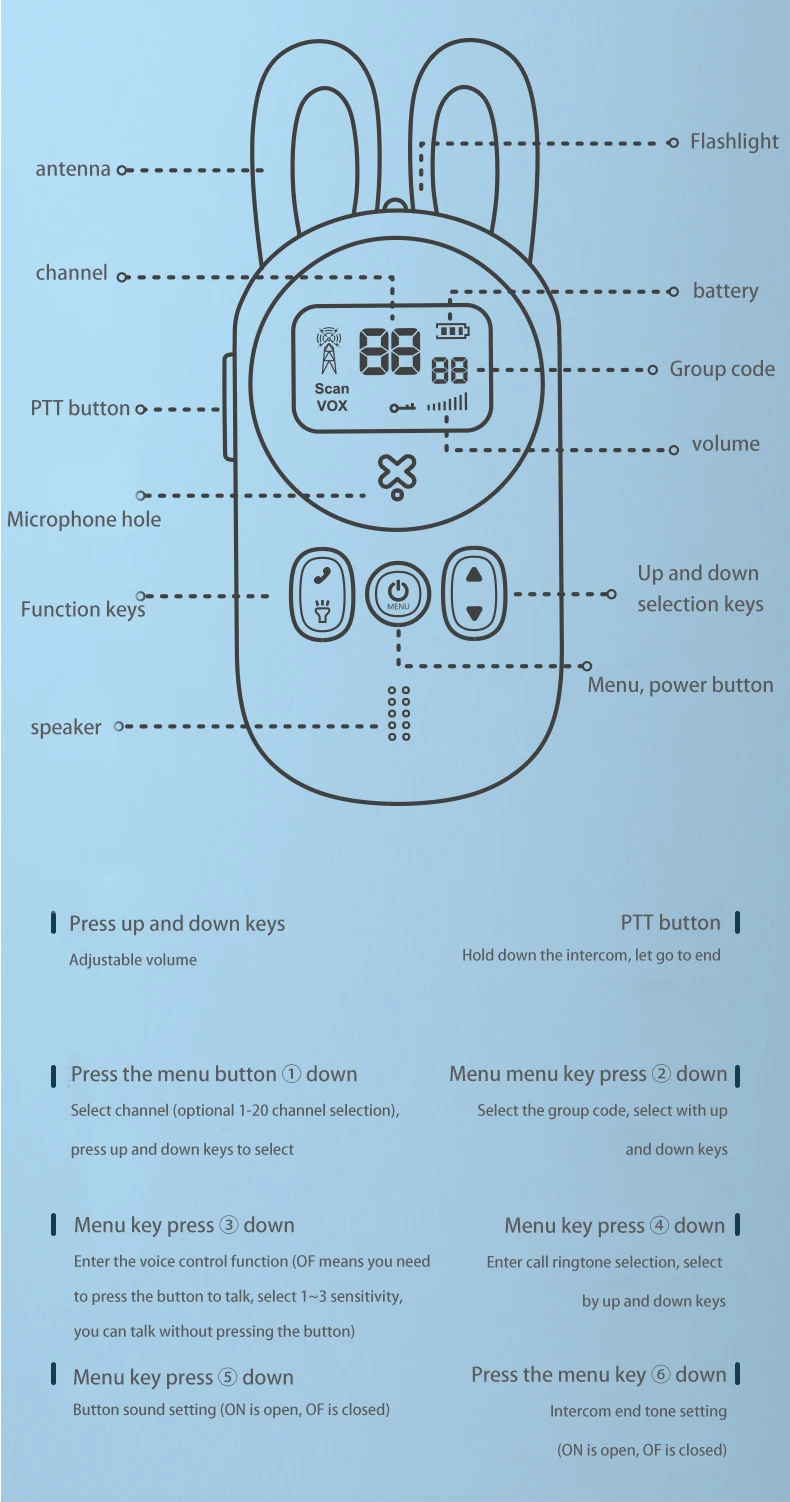 Диапазон разговоров: 2 миль (максимум 3 миль в открытом поле)