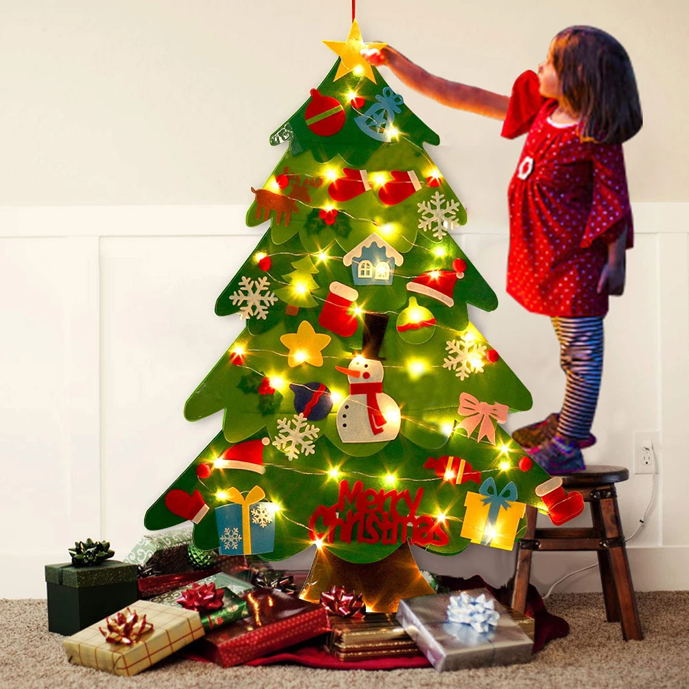 DIY войлочная Рождественская елка Рождественские украшения для дома Рождественская елка украшение с гирляндой светильник рождественские подарки новый год Navidad #20