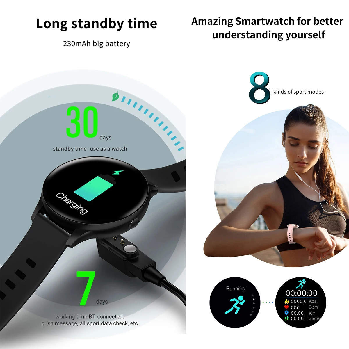 [Несколько режимов тренировки]Вам предлагаются 8 видов спортивных режимов, таких как бег, прогулки, скалолазание, езда и т. д., удовлетворение ваших различных потребностей в упражнениях.