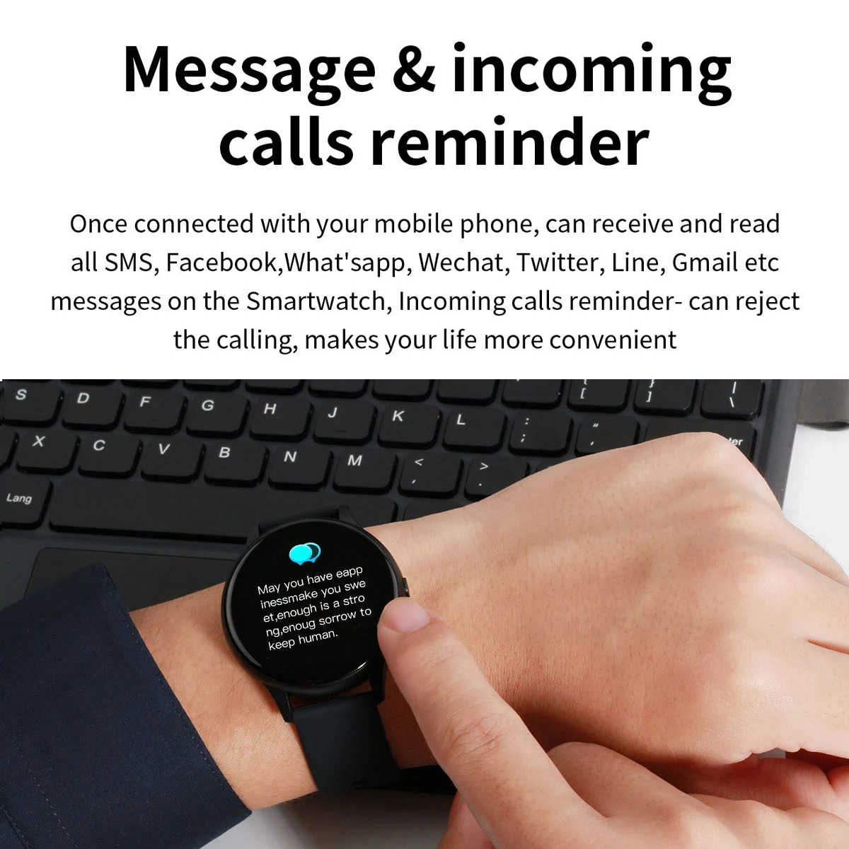 [Умное напоминание]При подключении к телефону, эти часы могут обеспечить синхронный дисплей всех социальных сообщений, таких как SMS,Facebook, WhatsApp Wechat и так далее. Он также предлагает напоминание о входящих звонках и напоминание о сидячем положении.