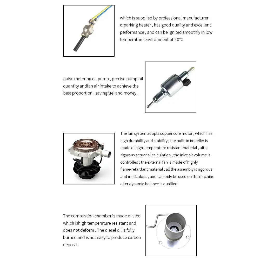 Особенности: 1. Широкое применение: воздушный дизельный Обогреватель используется для грузовиков, кораблей, прицепов, внедорожников, внедорожников, кемперов, караванов и всех других дизельных транспортных средств. Воздушные Дизельные Обогреватели также подходят для использования внутри помещений, таких как дома, склады, фабрики, офисы и т. д. Обратите внимание, что чем меньше пространство, тем быстрее будет скорость сохранения тепла. Если пространство большое, рекомендуется приобрести некоторые нагреватели для обогрева. 2. Быстрый нагрев: пульт дистанционного управления используется для предварительного нагрева и контроля объема масла, температуры и скорости ветра, а также заморозки на окнах можно устранить. Экологичный воздушный дизельный Обогреватель отличается низким уровнем выбросов и низким расходом топлива. Интегрированный (Дизельный подогреватель воздуха), экономит место и легко перемещается. После замены транспортного средства его можно разобрать на новое транспортное средство. Обратите внимание, что перед использованием пульта дистанционного управления необходимо настроить. Если у вас есть какие-либо вопросы, вы можете связаться с нами для получения помощи. 3. Простота в эксплуатации: ЖК-динамический дисплей четко покажет состояние работы машины. Можно устанавливать произвольно топливо, электричество и температуру. Динамический ЖК-дисплей, простота в эксплуатации, четкость с первого взгляда. Если есть какие-либо вопросы, пожалуйста, обратитесь к инструкции по эксплуатации ЖК-динамического дисплея на картинке. 4. Технология улетучивания: технология улетучивания использует керамическую свечу зажигания, чтобы нагреть топливо и испарить его в газ, быстро воспламениться и полностью сгорать. Размер изделия составляет около 16,3x15,4x6 дюймов (как показано на рисунке). 5. Основная информация: мощность нагревателя: 2квт-5 кВт, топливо бензиновое: дизельное, автомобильный Кондиционер Тип: нагрев, Номинальное напряжение: 12 В, расход топлива (л/ч): 0,64. 6 посылка: 1 x Дизельный подогреватель воздуха, 1 x соответствующие аксессуары (как показано на рисунке). Обратите внимание, что если у вас есть какие-либо вопросы по установке и использованию продукта, пожалуйста, не стесняйтесь отправить нам электронное письмо, мы сделаем все возможное, чтобы помочь вам. Или вы можете обратиться к инструкциям по установке, представленным на рисунке. Характеристики: Наименование: Воздушный Дизельный Нагреватель 12 В 5 кВт Размер изделия: около 16,3x15,4x6 дюймов Материал: металл + пластик Цвет: черный Напряжение: 12 В Мощность: 1 квт-5 кВт Топливо: Дизель Коэффициент полного сгорания: 100% Расход: 0,1 литров дизельного топлива в час Рабочая температура: -40 ° c ~ 80 ° c Применимо к: различным дизельным транспортным средствам, таким как автомобили, автобусы, рекреационные транспортные средства, грузовики, инженерные транспортные средства и т. д. Комплектация: 1 хост воздухонагревателя 1 пульт дистанционного управления 1 x Группа схем 1 впускная труба 1 x выхлопная труба 1 x воздуховыпускная труба 1 воздушный фильтр 1 Руководство пользователя Примечания: 1. Из-за ручного измерения возможны отклонения на 1-5 мм. Убедитесь, что вы не против этого перед покупкой. 2. Цвет может иметь некоторые различия в качестве образца, пожалуйста, поймите.