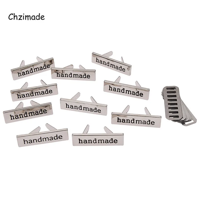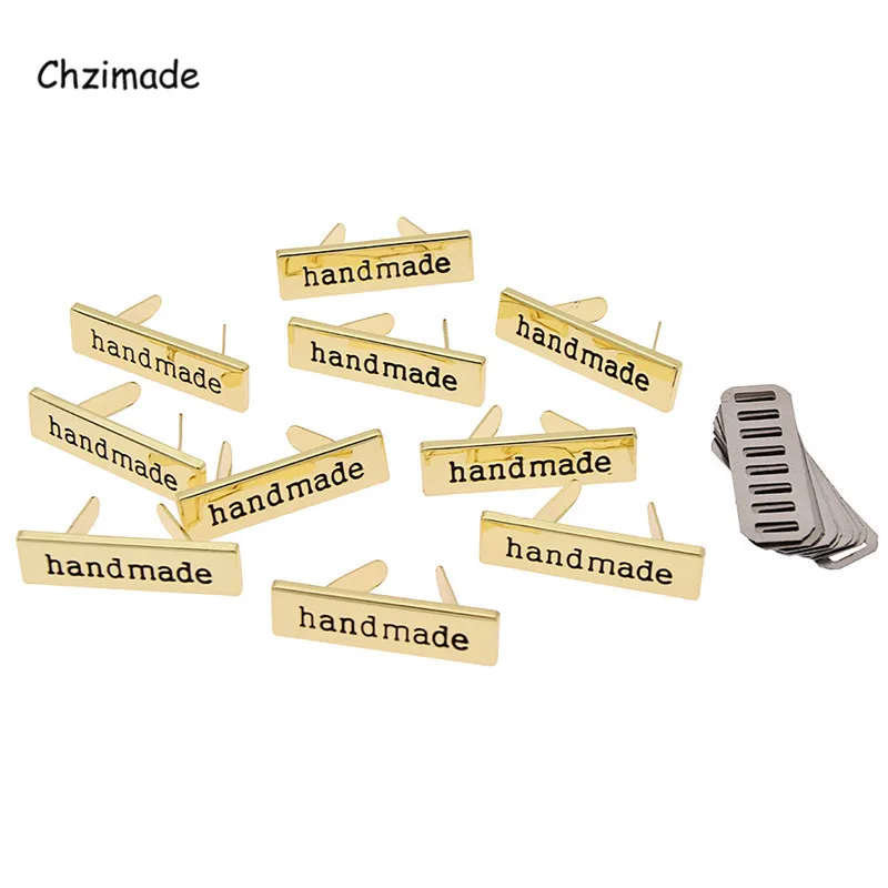 Chzimade 10 шт., золотые прямоугольные металлические ярлыки ручной работы для одежды, ярлыки для сумок для одежды, ярлыки с надписью, аксессуары для Diy