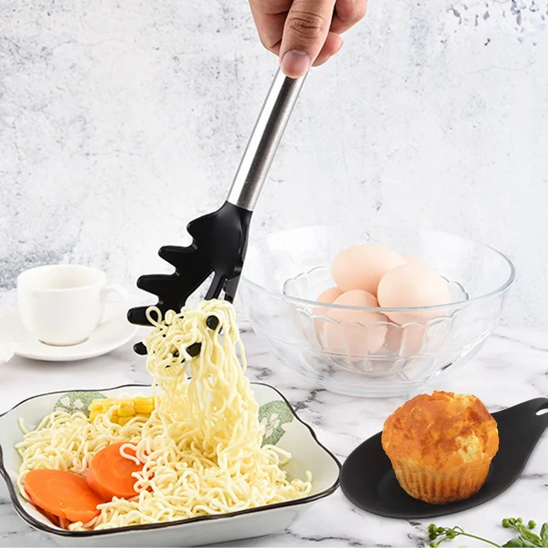 ** Ложка для отдыха: Силиконовая ложка для еды, может использоваться для укладки ложки, кисти, вилки, лопаты, Тернера, посуды и так далее. С подвесным отверстием для удобного хранения, вы можете повесить его на стену.