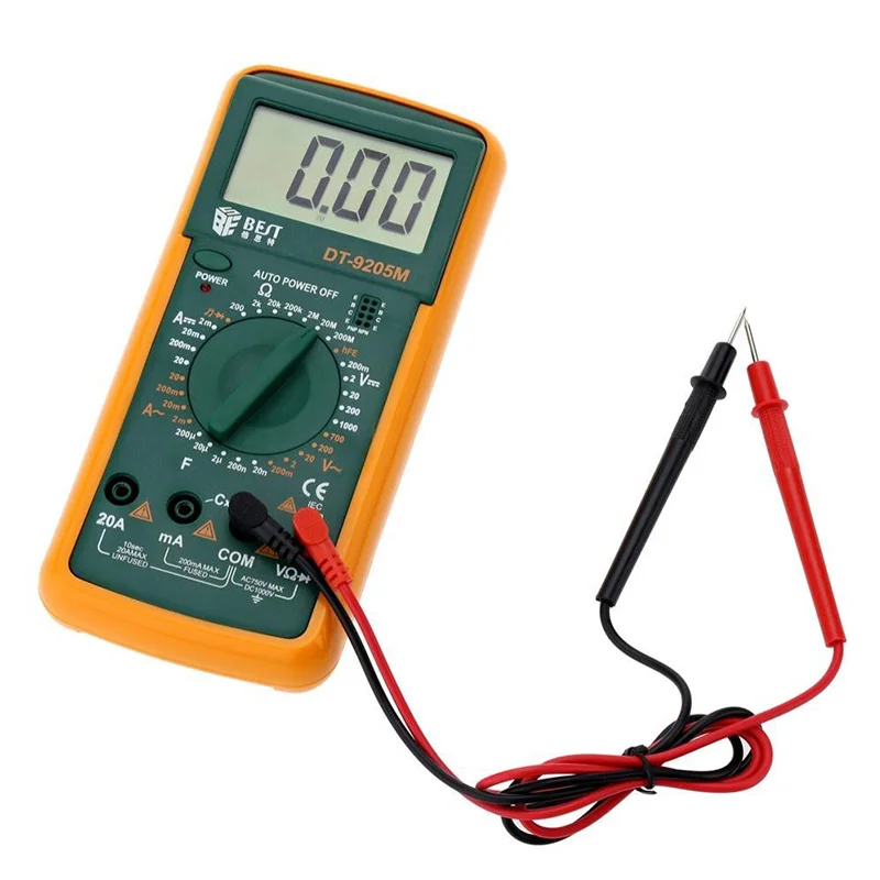 Лучший цифровой мультиметр times Rest DT9205M-это простой в эксплуатации, точные показания, полнофункциональные, компактные, легко переносятся, с помощью портативного большого ЖК-мультиметра с аккумулятором, DT9205M цифровой мультиметр для трех с половиной, таблица может быть использована toMeasure DC напряжение/Электрический, AC напряжение/ток, сопротивление, Тест на емкость, диодный тест, измерение транзисторов HFE и отключение цепи и т. д.