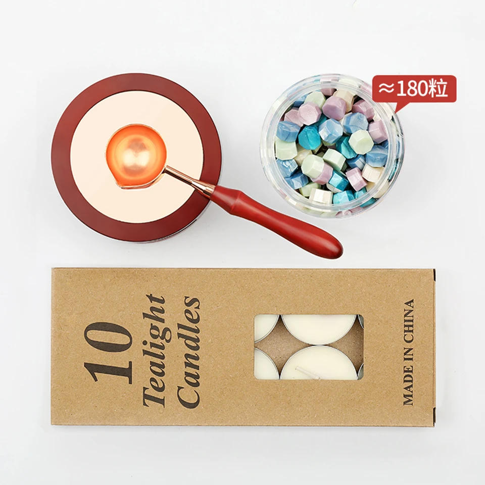 Спецификация Название продукта: набор штампов для воска Цвета: как показано на фотографии Посылка включает в себя: 1 шт. * уплотнительная восковая печь 1 шт. * уплотнительная ложка для воска 10 шт * герметичные восковые свечи 180 шт * уплотнительные восковые бусины Посылка: 1 комплект * наборы штампов для запечатывания воска