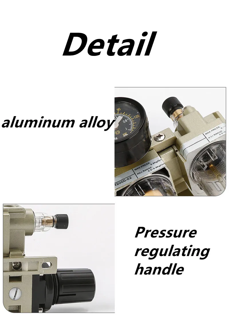 pecification: Product name: Pneumatic air filter regulator Condition: New Fluid: Air Max operating preesure: 1.0Mpa(10.2kgf/ cm²) Ambient & fluid temperature: 5-6°C Recommended lubrication:Turbine No.1 oil (ISO VG32) Dimension: 16x16.5cm Quantity: 1 Note: 1.We provide clear pictures, measurements where possible. Please check as much as possible to make sure the item is the one that you need. 2.Please allow 0.5-1 inch difference due to manual measurement.(1inch=2.54cm) 3.There are no instructions included in this kit.If you want to know how to use or install it,please contact us by Email.We will provide help as much as possible. Package Includes: 1 x Pneumatic air filter regulator