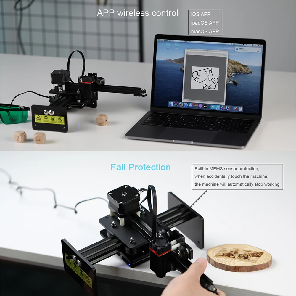 Более удобное и быстрое: беспроводное управление в режиме off-line и APP, гравировка на 360 °, высокая скорость, экономия времени. Облачная галерея и онлайн Gcode упрощают создание.