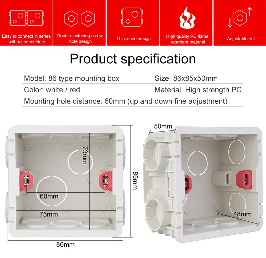 Базовая розетка для переключателя, распределительная поверхность, нижняя коробка, настенная розетка, темная коробка 86x85 мм для 86 типов, Монтажная коробка для переключателя