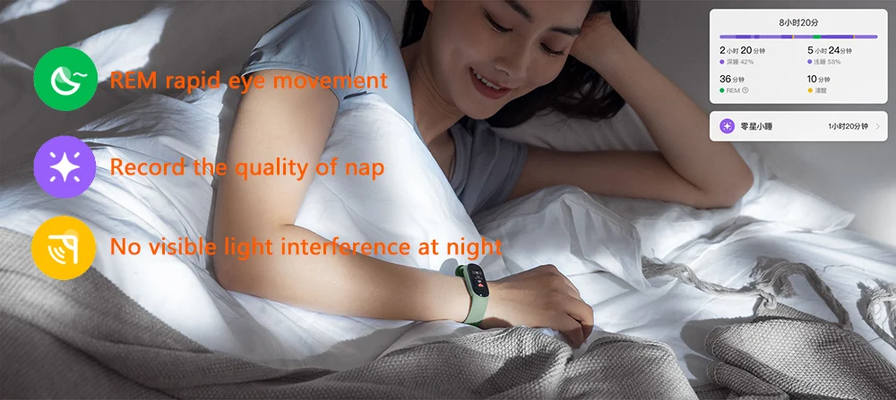 · 24-часовой Смарт сердечный ритм мониторинг займет по управлению вашим здоровьем с дальнейшими шагами. Улучшенная Технология анализа сна, точность снова выросла на 40%, и хороший ночной сон прост.