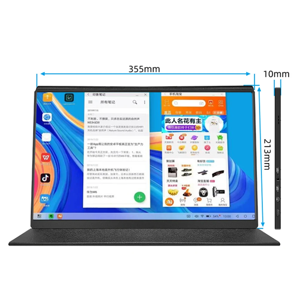 Название продукта 15,6 inch монитор Динамик Встроенный Разрешение 3840x2160 Мощность питания Зарядное устройство PD Размеры 15,6 дюймов Частота обновления 60 Гц Измерение 354X212X10mm VESA ССенсорный экран Не прикасаться Взимать плату за другим устройством Не поддерживаетВес Около 800G Разъем для наушников СИнтерфейс Дисплейный порт MiniDP типа,HDMI, Type-cСоединиться с коврик для мыши и клавиатурыПоддержкаТВ-приставка SПоддержка HDRUSB-C поддержка модели TNT, EMUI PC, DEX