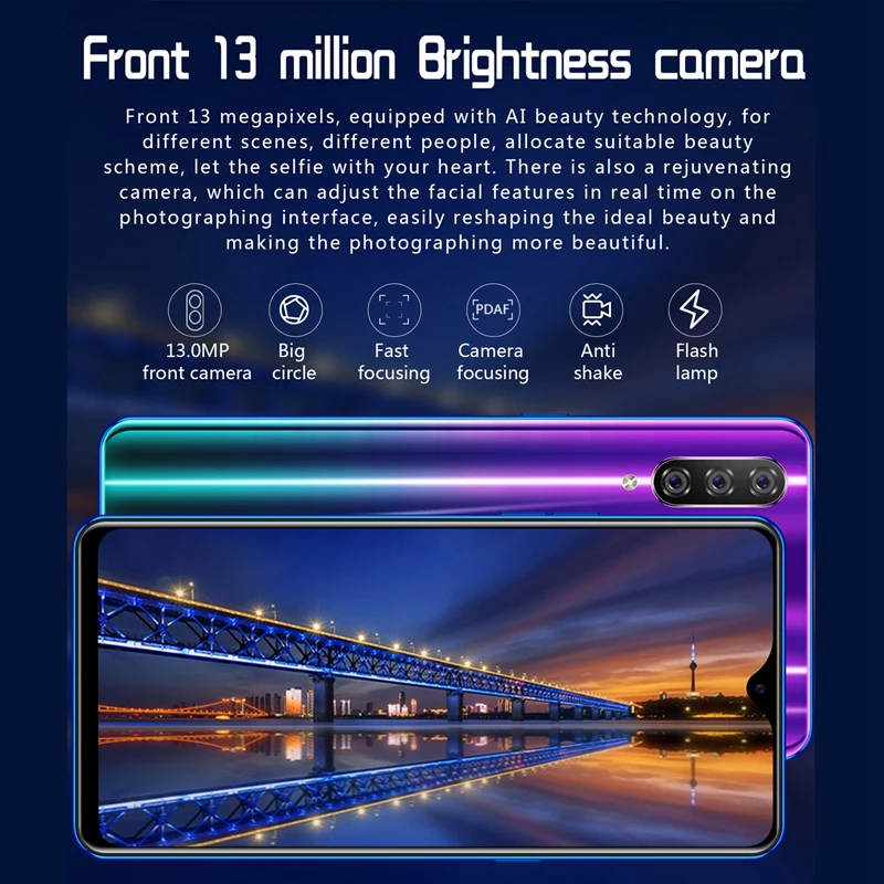 Разблокировка лица, вы можете напрямую использовать функцию разблокировки лица, которая безопасна в использовании. Пятиточечный пресс sn mode, гальванический градиентный цвет, горячая Изогнутая Стеклянная задняя крышка, Функция smart wake-up, простой и чистый мобильный телефон.