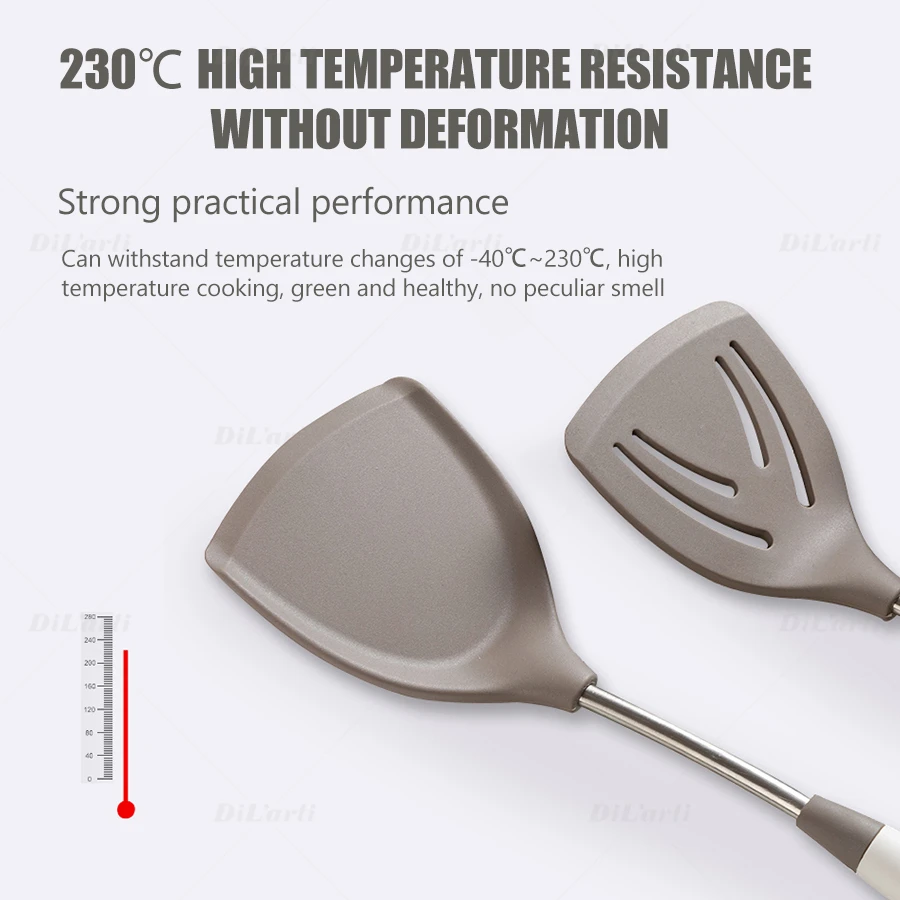 3. Не деформируется, может выдерживать перепады температуры-40 ℃ ~ 230 ℃, высокая температура приготовления пищи, зеленый и здоровый, нет специфического запаха, удобное хранение, конструкция подвесного отверстия означает, что вы можете иметь его, не беспокоясь, использовать его.