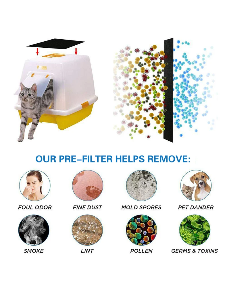 1. Фильтр для кошачьих туалетов: Позвольте вашему ящику для мусора снова почувствовать запах нового, решить проблему плохого запаха мусорной банки. Удалите запах, сохраните свежий и чистый запах и сохраните вашего питомца здоровым и здоровым.