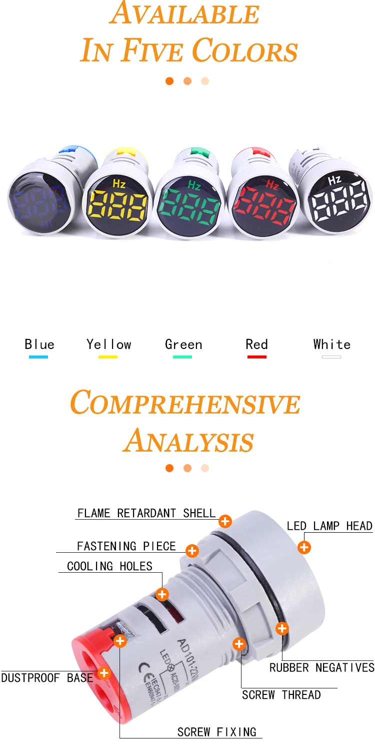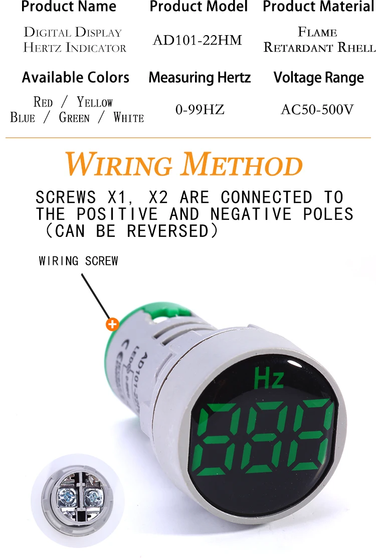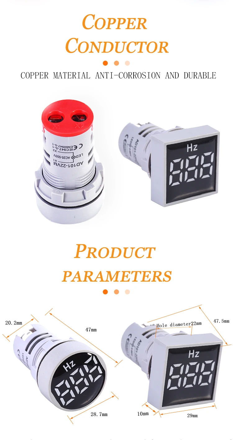 22 мм защитная пленка 0-99 Гц диапазон измерения цифровой дисплей электричество Герц Частота метр квадратный круглый индикатор сигнала