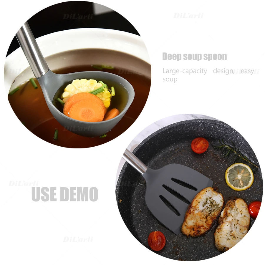 Набор силиконовых столовых приборов является помощником на кухне, очень подходит для всех типов продуктов питания и кухонных принадлежностей, жарки, взбитых сливок, мороженого и т. д. Ложки, вилки для спагетти и т. д. очень подходят для всех видов пищи и приготовления пищи. Применение: микроволновая печь, тостер, посудомоечная машина, пароварка, можно варить и стерилизовать. Материал: силикон + нержавеющая сталь + Натуральный Бук Цвет: серый Вес: 1000 г ~ 1200 г Количество: 10/11/12 Характеристика: Экологически чистый, нетоксичный, термостойкий, не липкий, прочный, безопасный, простой в чистке кухонная посуда, без деформации, выдерживает перепады температуры-40 ℃ ~ 230 ℃, высокая температура приготовления пищи, зеленый и здоровый, без запаха, удобное хранение, дизайн висячего отверстия, не беспокойтесь при использовании. Примечание: обратите внимание, что из-за влияния светильник может быть Хроматическая аберрация s светильник во время фотографии продукта.