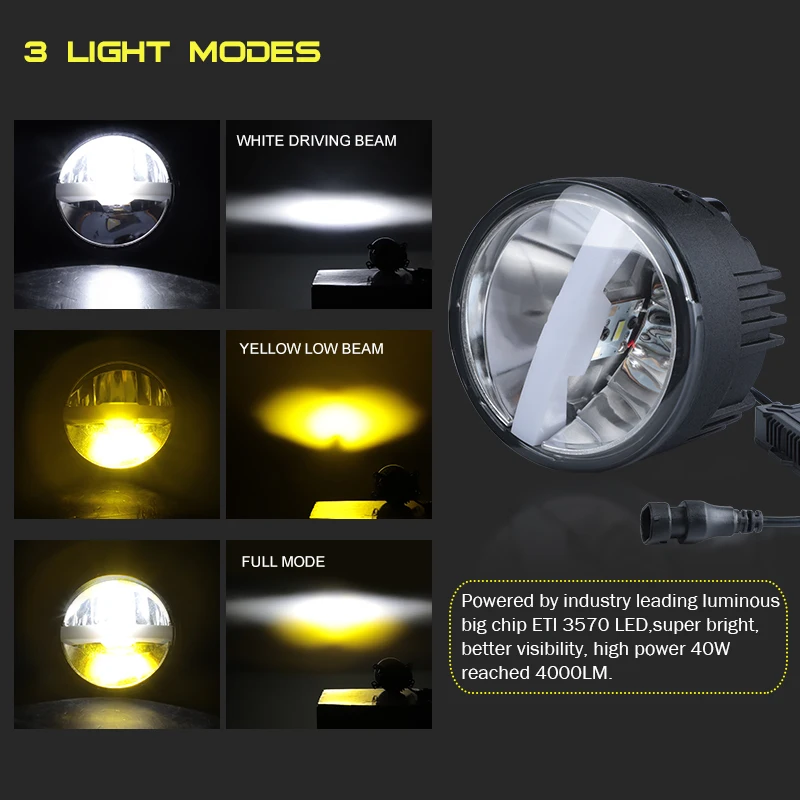 Полностью металлический светодиодный противотуманный светильник s 3,5 дюйма Круглый 40 Вт Противотуманные фары желтый белый DRL внедорожный противотуманный светильник для Jeep Dodge Chrysler Fiat Freemont 12В 24В