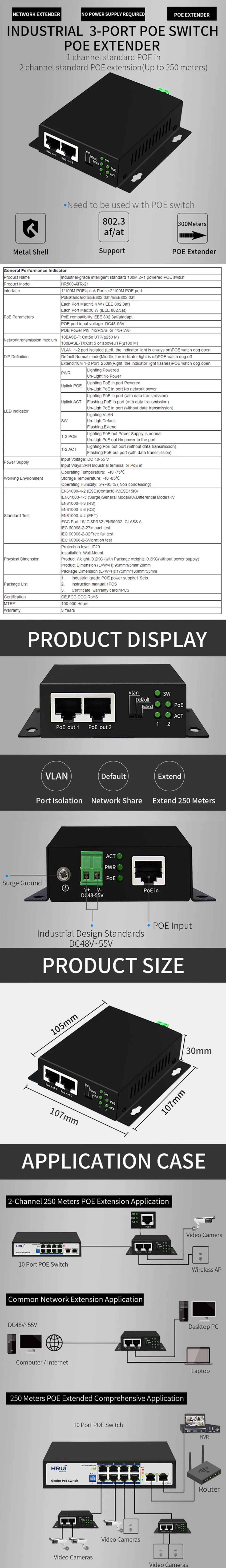 В HR500-ATR-21 устройства является своего рода промышленных PoE-приведенный в действие 3-Порты и разъёмы s переключатель с PoE транзитная пересылки, POE PD Порты и разъёмы max sup Порты и разъёмы 30 Вт, промышленный Феникс терминал (48 ~ 55V вход); инжектор POE Порты и разъёмы sup Порты и разъёмы IEEE802.3af (15,4 W) и IEEE802.3at(30 Вт), самая длинная редуктором-250 метров.