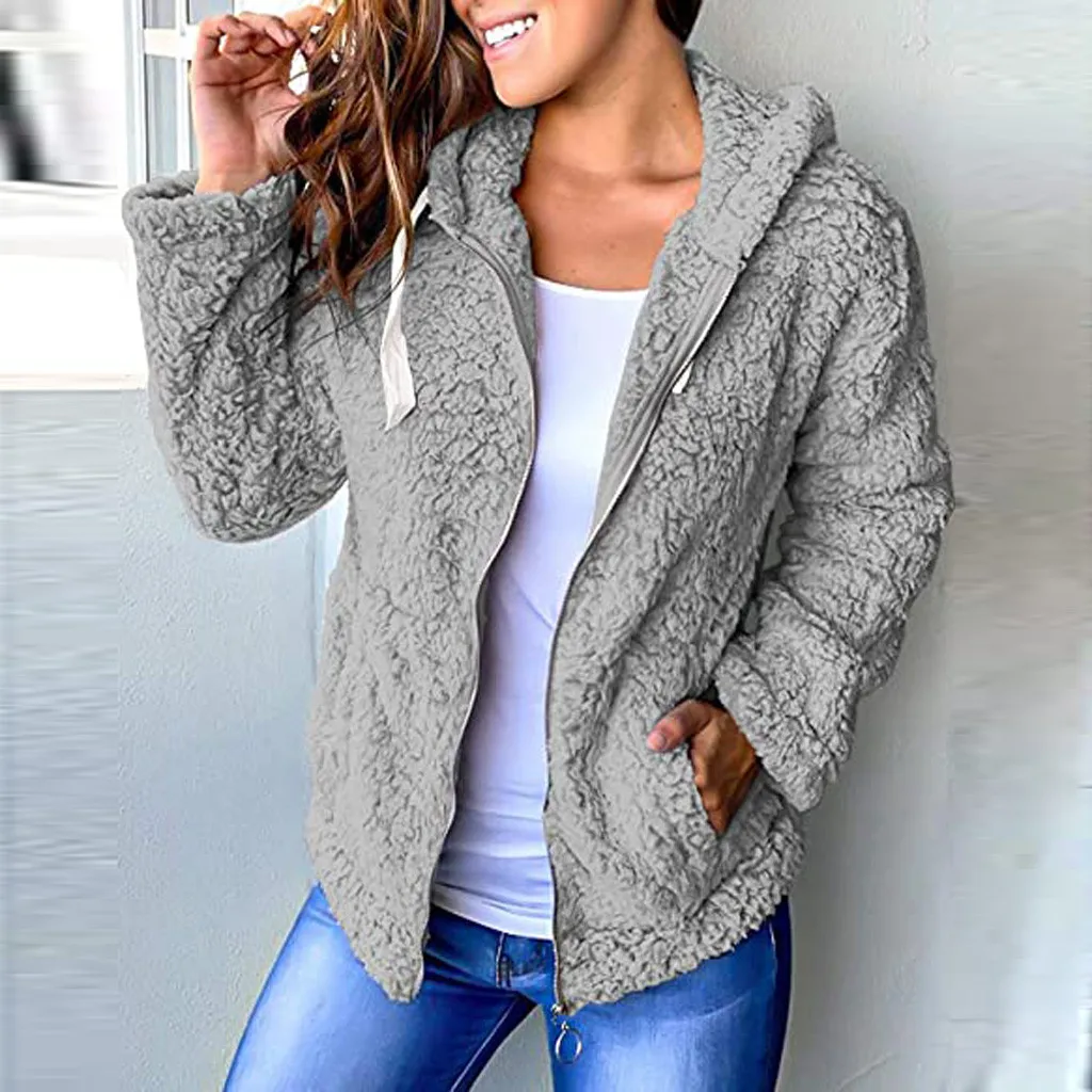 Женская куртка с длинным рукавом на молнии с капюшоном с массивными карманами пальто Топы