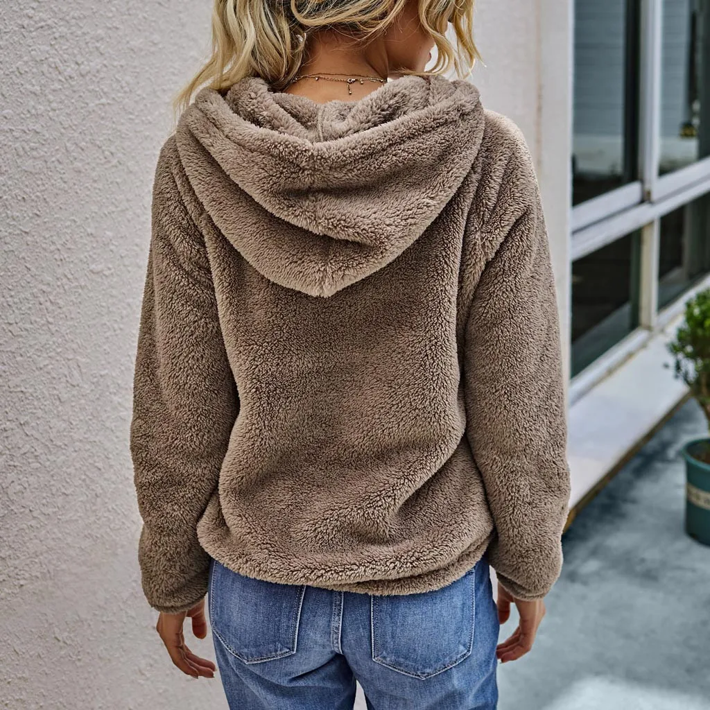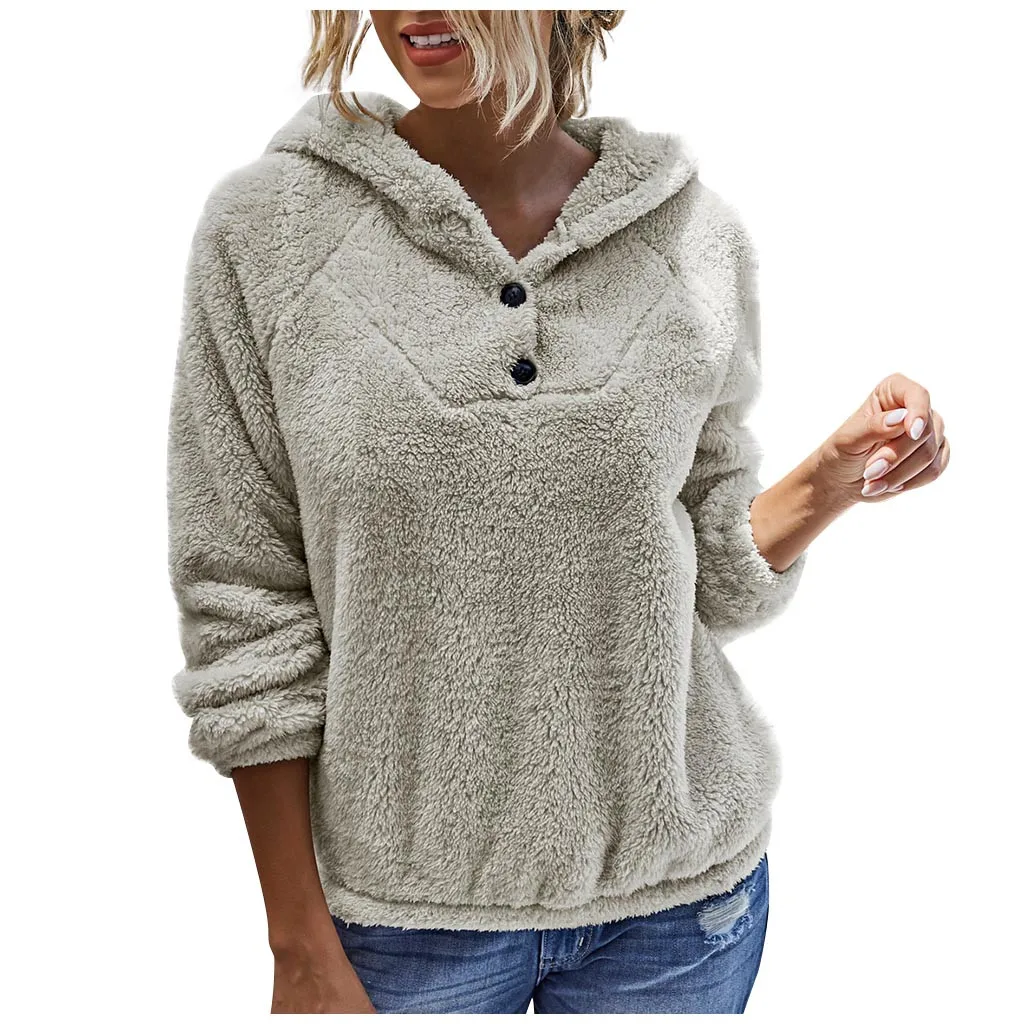 Женский модный однотонный пуловер с капюшоном, плюшевый свитер с длинными рукавами, топы