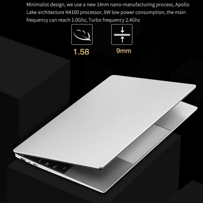 2156 дюйма IPS Sn с разрешением 1920x1080. Впечатляющий цвет и четкость, технология IPS обеспечивает широкий угол обзора. 3. Процессор Celeron N4100 четырехъядерный четыре потока 1,1 ГГц, до 2,4 ГГц. Ультра-низковольтная платформа и двухъядерная обработка обеспечивают максимальную высокую эффективность