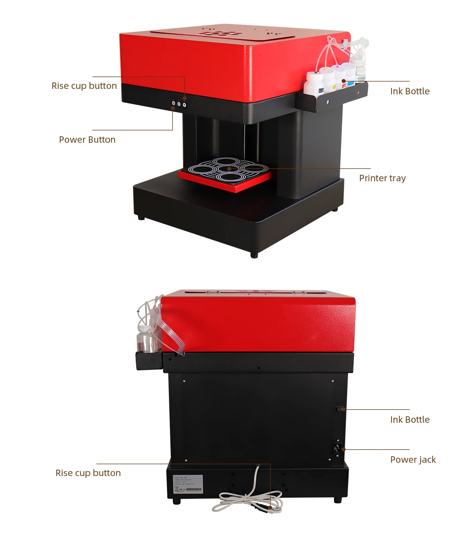 4 чашки селфи кофе принтер латте принтер еда печати машина СНПЧ версия со свободными съедобными чернилами для капучино торт макарон