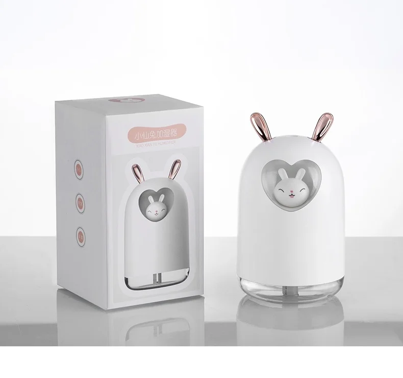 Название продукта: Восхитительный увлажнитель воздуха в виде кролика объемом 300 мл Материал: АБС + силикон + ПП Резервуар для воды: 300 мл Размер: 88*88*143 мм Цвет: белый/розовый Мощность: 1,5-2 Вт Напряжение: DC5V Выход тумана: 30-35 мл/ч Время работы: 6-12 часов