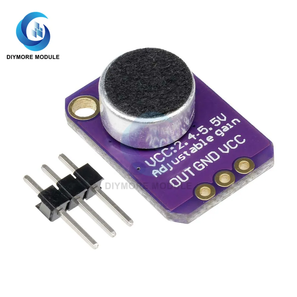 tested board comes with a 20-20KHz electret microphone soldered on. For the amplification, we use the