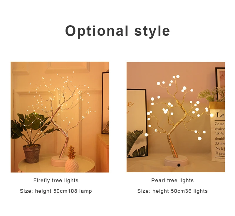 Размер изделия: основа 12 см. 36 головок-высота лампы из жемчужного дерева составляет около 45 см, 108 головок-высота лампы из медной проволоки составляет около 50 см, базовый переключатель-Сенсорный Тип, более высокая атмосфера