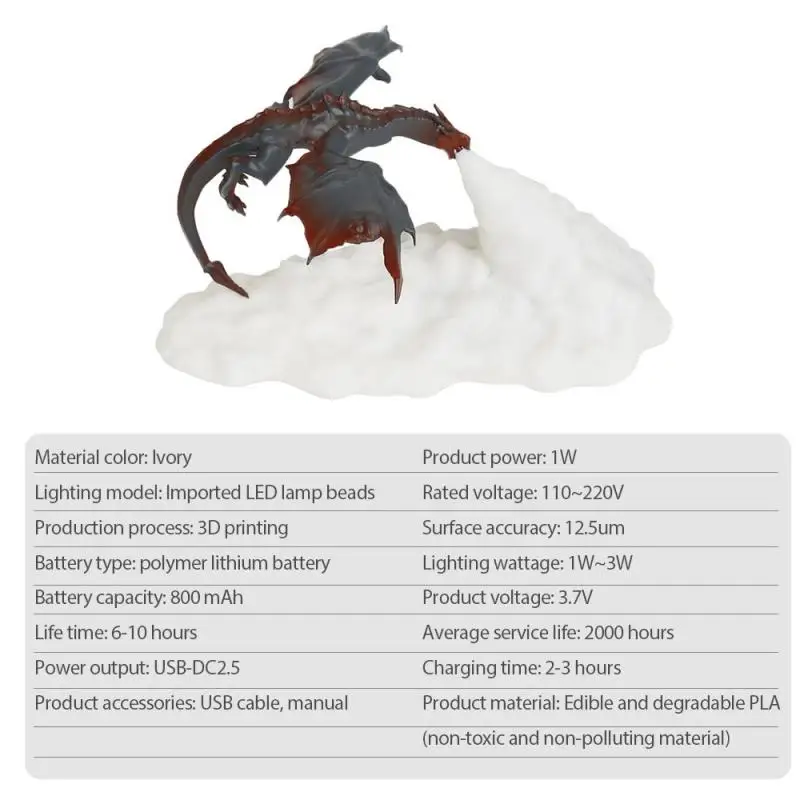 1 * модель дракона, 1 * лампа, 1 * USB кабель