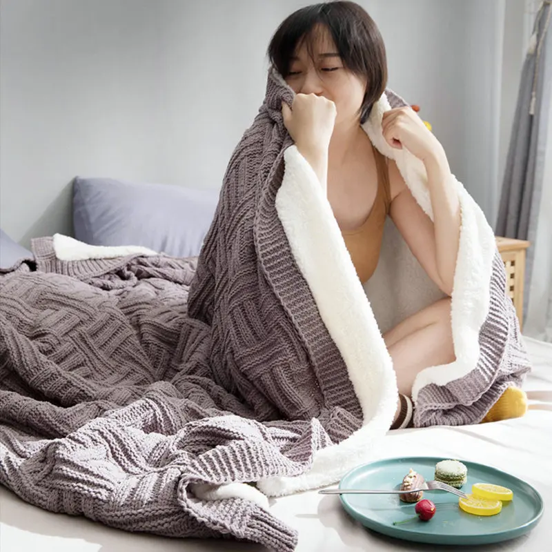 Зимнее связанное вручную одеяло из синели и хлопковой шерсти, супер мягкое теплое одеяло для домашнего декора, кровать, диван, одеяла