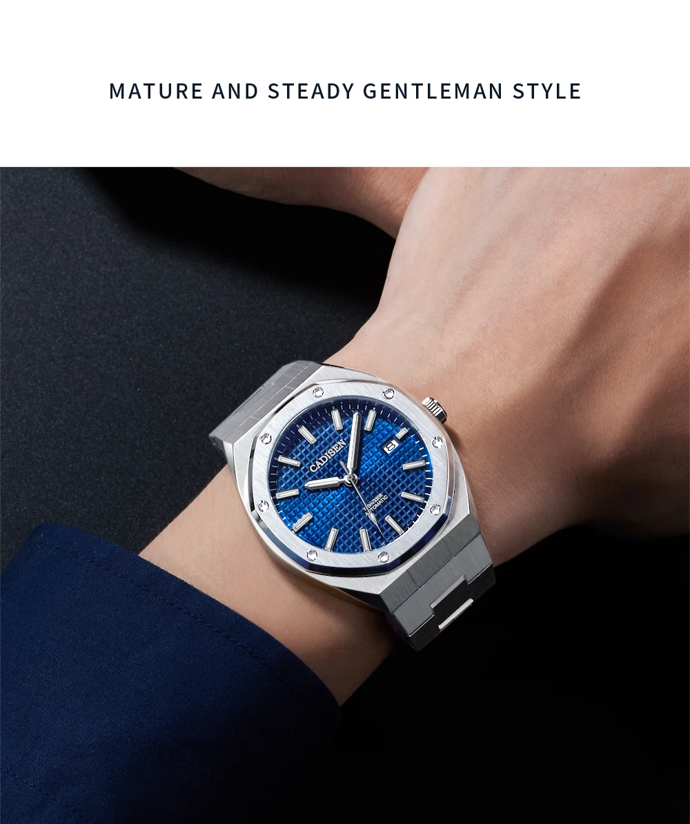 Мужские механические Автоматические часы CADISEN 42 мм NH35A, синие часы для мужчин, 100 м, водонепроницаемые брендовые Роскошные повседневные деловые наручные часы, Описание: - 100% абсолютно новые и высококачественные. -Точные автоматические механические часы. Для точного хранения времени. -Японский NH36A полностью автоматический механический механизм. -Чехол из нержавеющей стали 316L и ремешок для часов из нержавеющей стали-Водонепроницаемость на глубине 100 м. Особенности (приблизительно): -корпус Диаметр: 4,2 см прибл. -Корпус Толщина: 1,25 см прибл. -Длина ремешка (включая чехол): около 20 см -Ширина ремешка: около 2,45 см Посылка включает в себя:-один CADSIEN совершенно новые часы-один ящик. -Руководство по эксплуатации, гарантийный талон. -Одна тканевая салфетка для чистки часов
