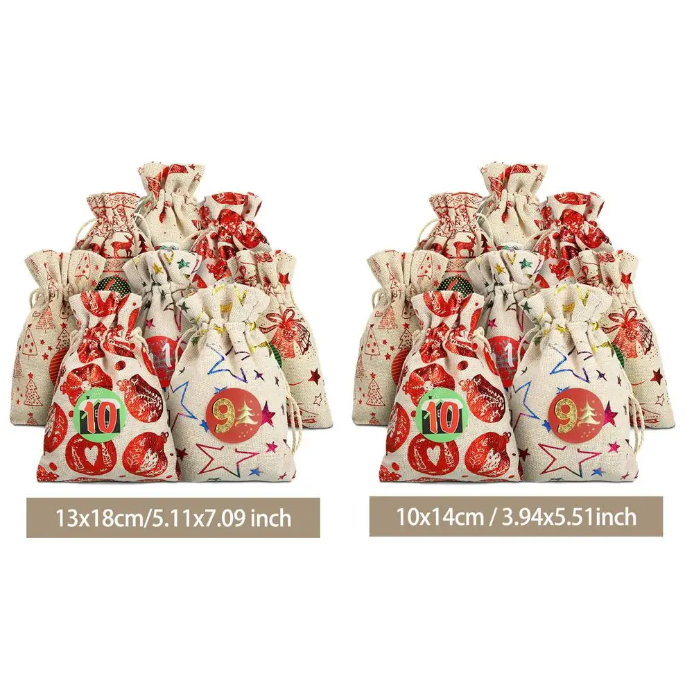 5. Рождественское украшение интерьера: вы можете повесить Подарочный мешок с календарем с деревянными зажимами и шпагатом, чтобы сделать баннер гирлянды, который имеет красивый внешний вид и создает хорошее настроение для людей. Его также можно использовать в качестве отличного рождественского интерьера для дней рождения, Дня благодарения, свадеб, вечеринок, праздников и других случаев.