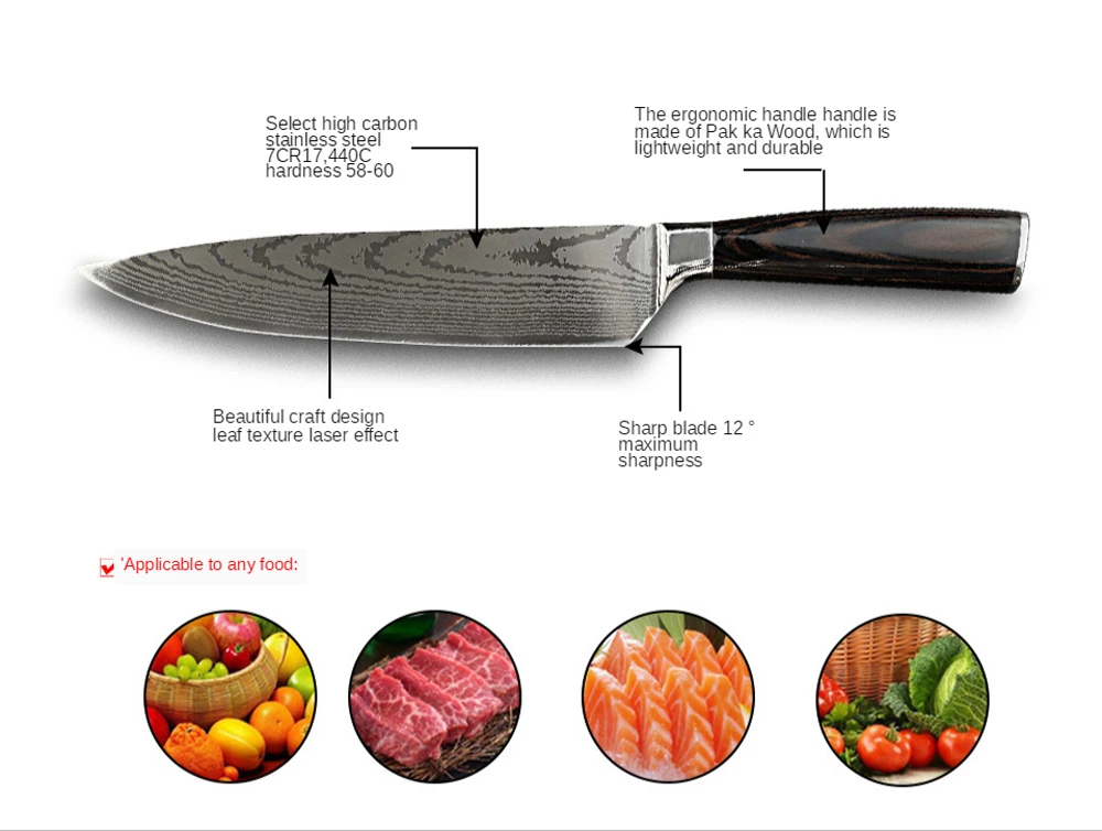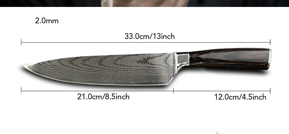 Подробная информация о продукте: лазерно-создан с принтом зыбучих песков с узором из дамасский нож с высокой степенью узор сходство, 7-Фирменные Лезвия, высокая твердость и прочность. После тестирования, это очень остро, цветная деревянная ручка чувствует себя хорошо, и ручка не будет уставать.