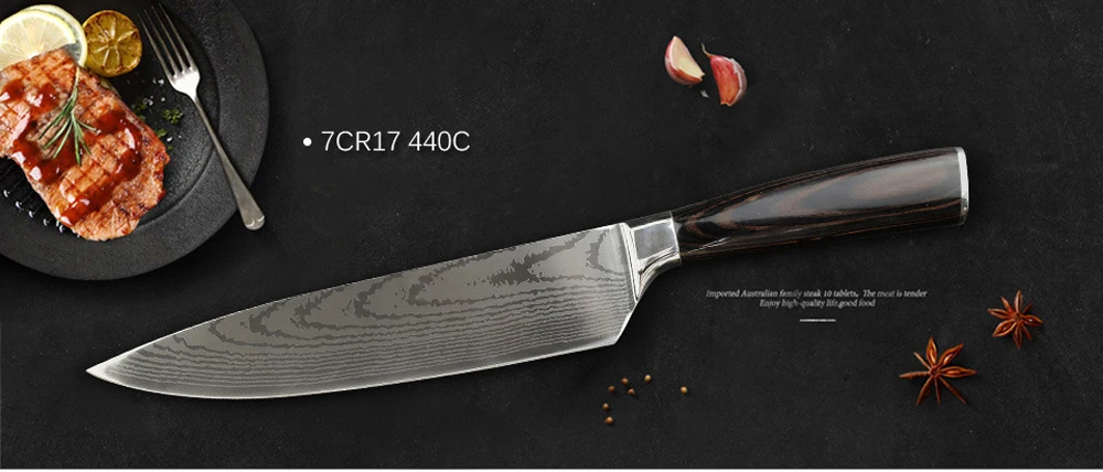 Гироборд с колесами 8 дюймов дамасский нож шеф-повара 7cr17 440c Нержавеющая сталь кухонный нож из высокоуглеродистой стали нож для Разделки мяса японский кухня; кулинария нож