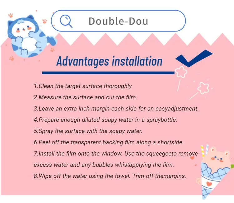 5. Широкое использование-этот продукт в основном используется на гладких стеклянных поверхностях (таких как окна, раздвижные двери, стеклянный стол, стеклянный шкаф и так далее. Хорошо подходит для дома/офиса/магазина.)