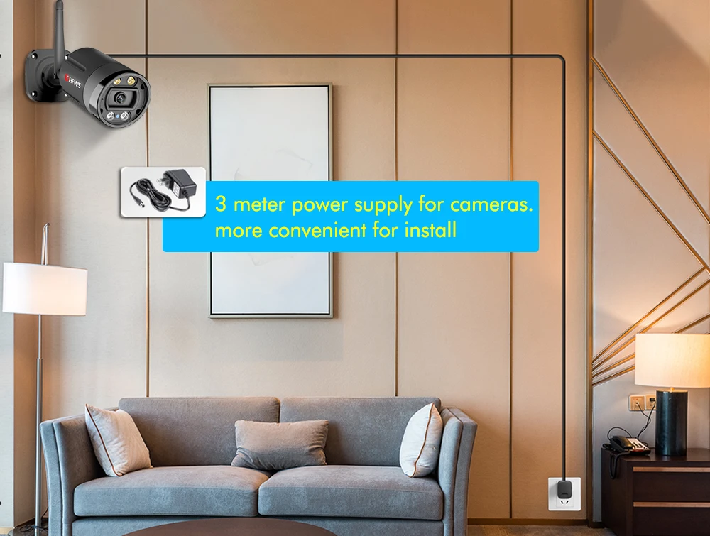 The camera comes with a 3 meter power supply, which is more convenient to install