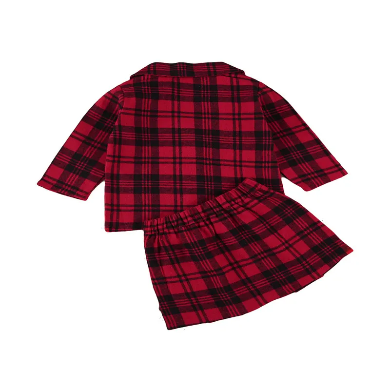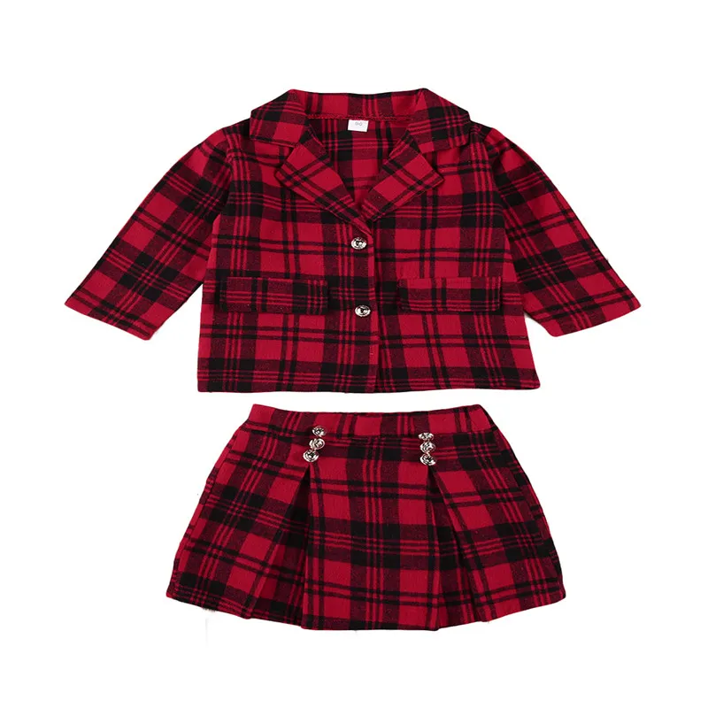 Комплект одежды для маленьких девочек, осенняя одежда для малышей Модный комплект из 2 предметов, красная клетчатая куртка + клетчатая Короткая юбка комплект Bebes