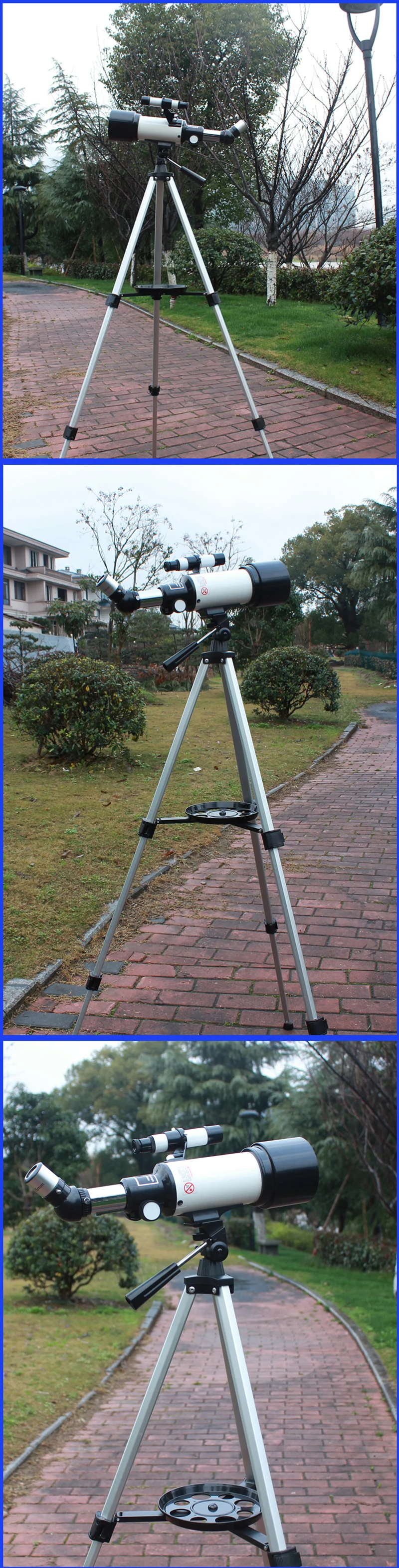 1. Материал: алюминиевый сплав и пластик. Прочный светильник весовой и переносной. 2. Сборный алюминиевый компактный фотографический штатив обеспечивает стабильную платформу. Складной штатив. 3. Простая установка без инструментов. 4. Все стеклянные оптические элементы с покрытием для четких, четких изображений. 5. Телескоп и штатив помещаются в индивидуальной коробке для удобства путешествий и хранения. 6. Он может соответствовать SLR.(Вы должны купить адаптер) 7. Лучший подарок для друзей, детей. (Внимание: никогда не пытайтесь наблюдать за солнцем непосредственно через телескоп, это сильно повредит ваш глаз!) Посылка включает в себя: 1 х 40070 трубка телескопа 1x1,25 дюймов 10 мм окуляр микроскопа 1x1,25 дюймов 25 мм окуляр микроскопа 1 x искатель 1x1,25 дюймов 3X линзой Барлоу 1x1,25 дюймов 1.5X вертикальный окуляр (только 90 градусов версии телескоп у этой) 1 x Алюминий штатив-Трипод 1 x замок ручка 1 x Руководство пользователя