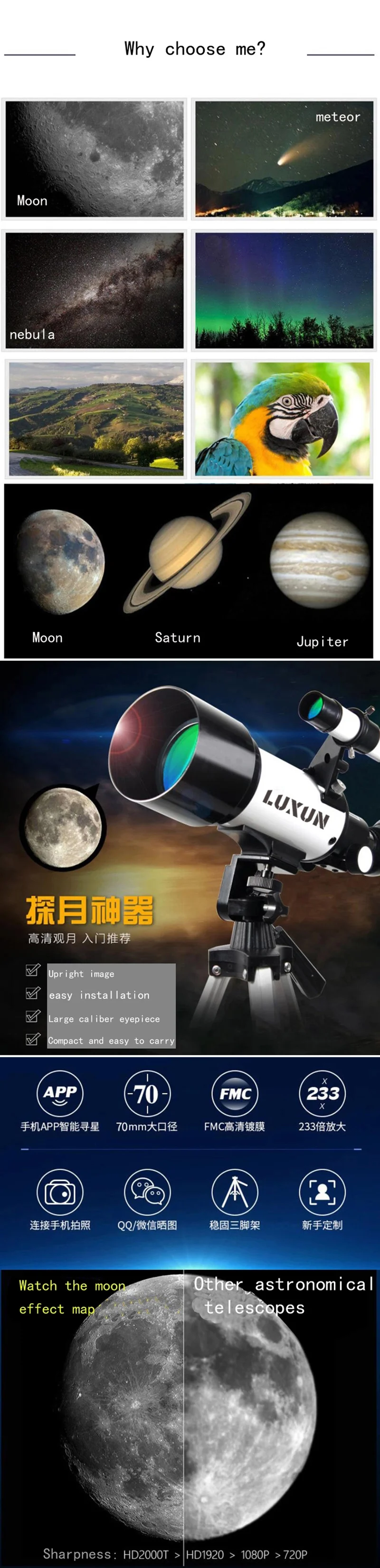 LUXUN 40070 Профессиональный Мощный космический Монокуляр со свободным штативом, HD телескоп высокого времени, астрономический телескоп для наблюдения за звездами