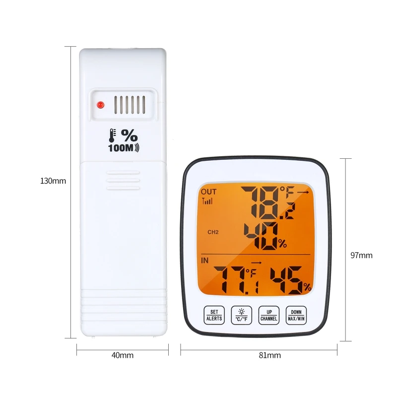 Простота в эксплуатации: разработан с 4 сенсорными кнопками для легкой работы, такими как включение/выключение подсветки, Переключение блока ℃/°F, регулировка вверх/вниз, настройка значения оповещения и т. д.