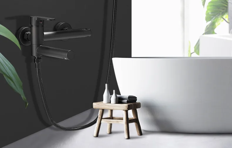 Смеситель для ванной комнаты, набор для душа, смеситель для ванны, настенный кран для ванны, кран для горячей и холодной воды, набор для ванной, матовый черный