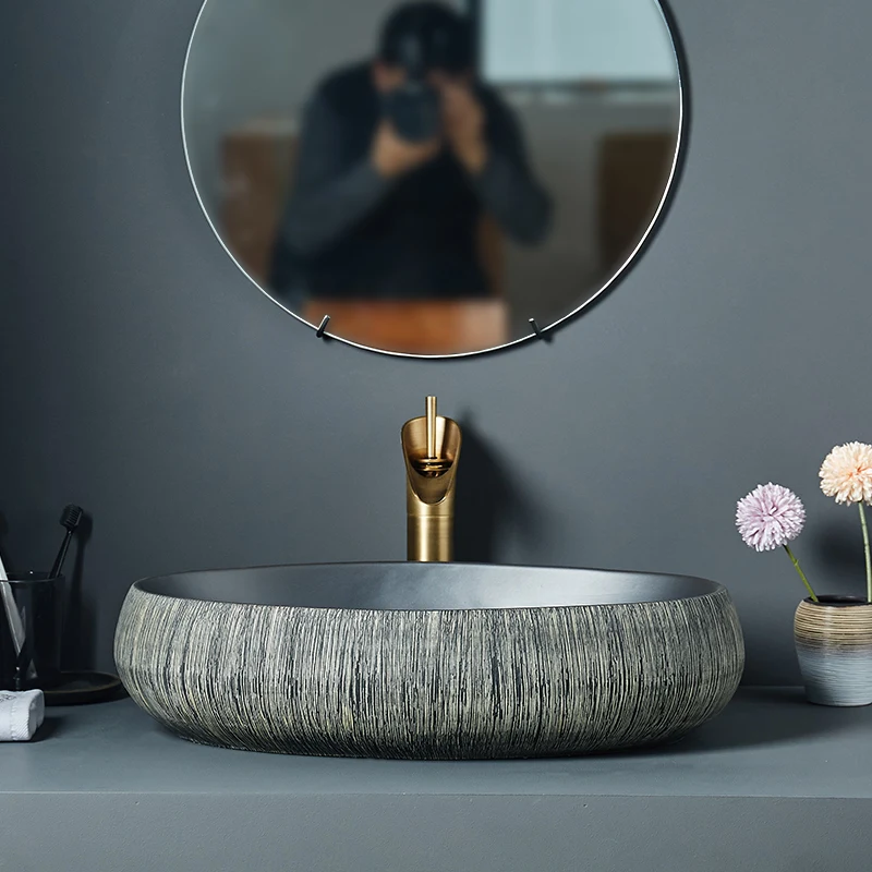 Bathroom Sinks Art Basin Lavamanos Vessel Sinks Ceramic Wash Basin Household Washbasin Toilet Sink Shampoo Basin for Hotel