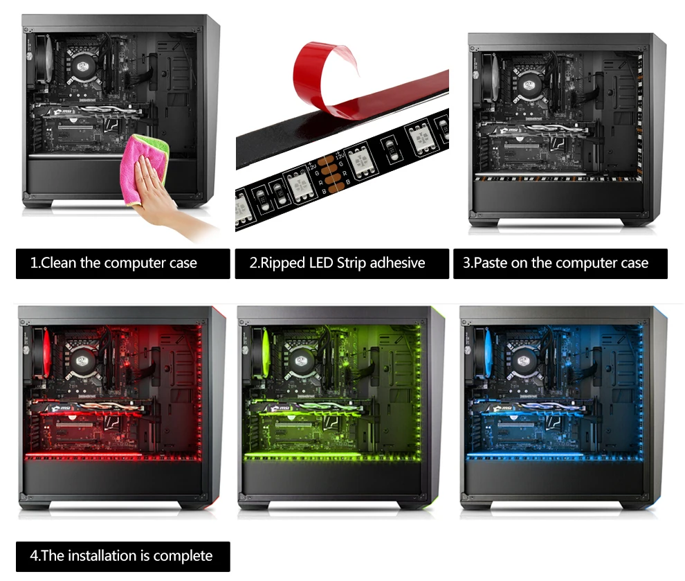 -Просто подключите разъем к источнику питания вашего ПК, а другой конец-светодиодный