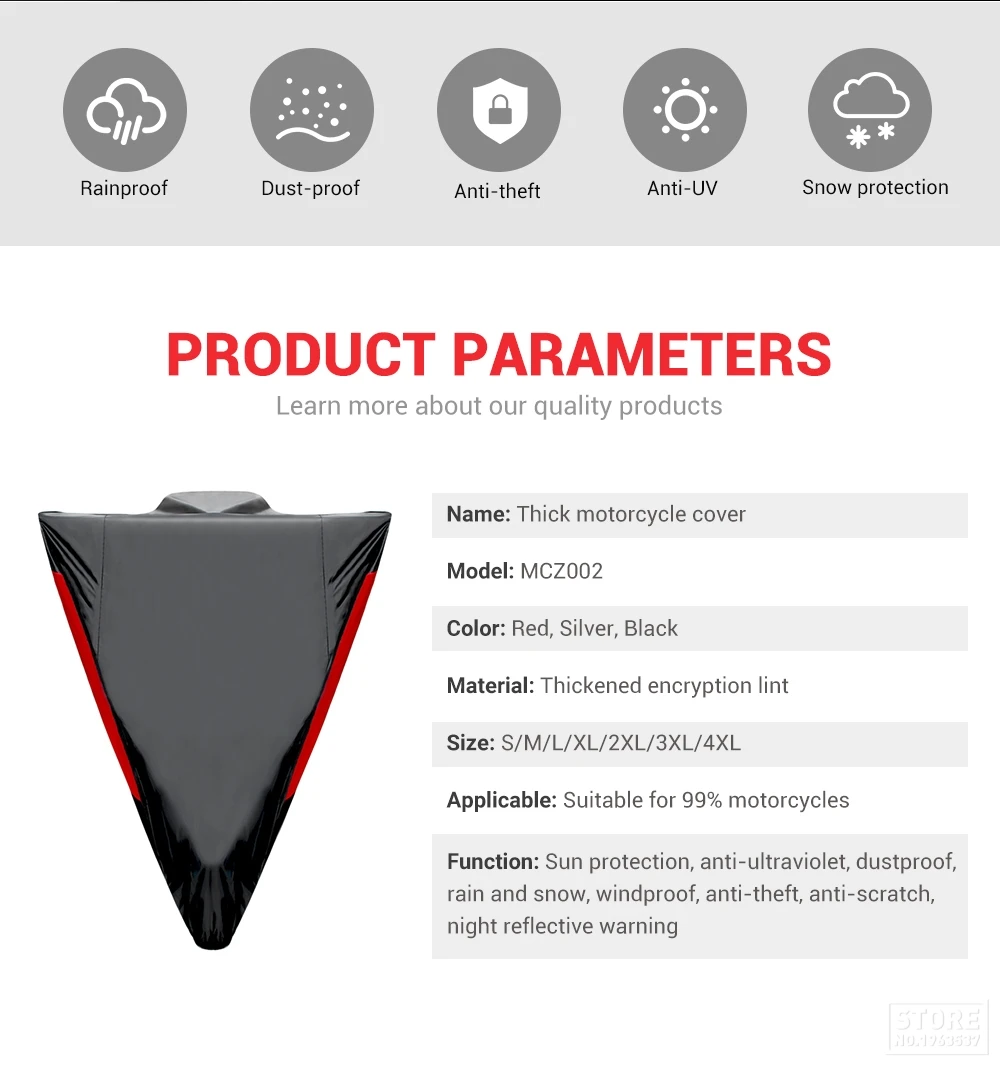 保护你的摩托车从阳光、水、鸟、树、灰尘和污垢