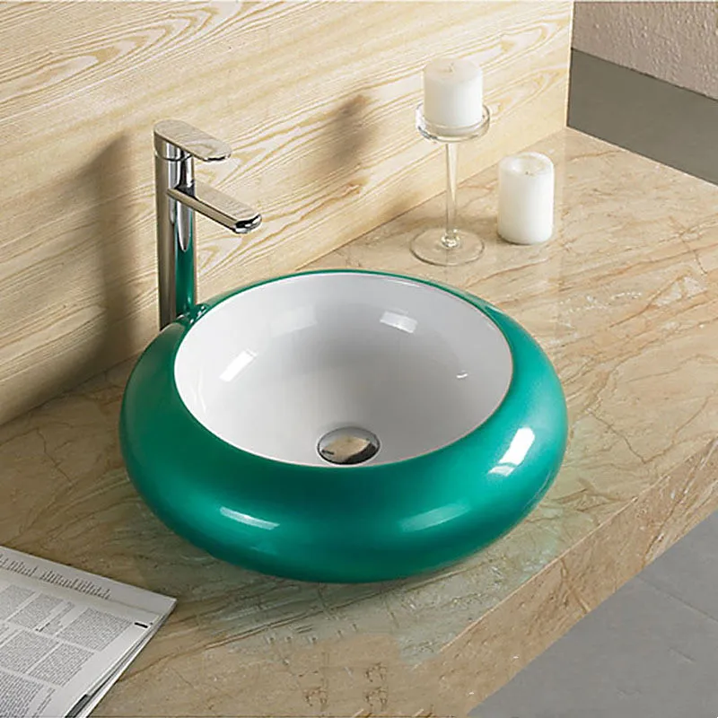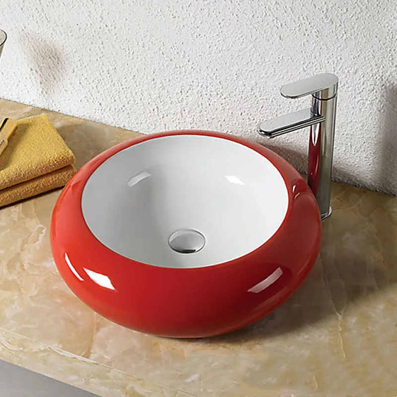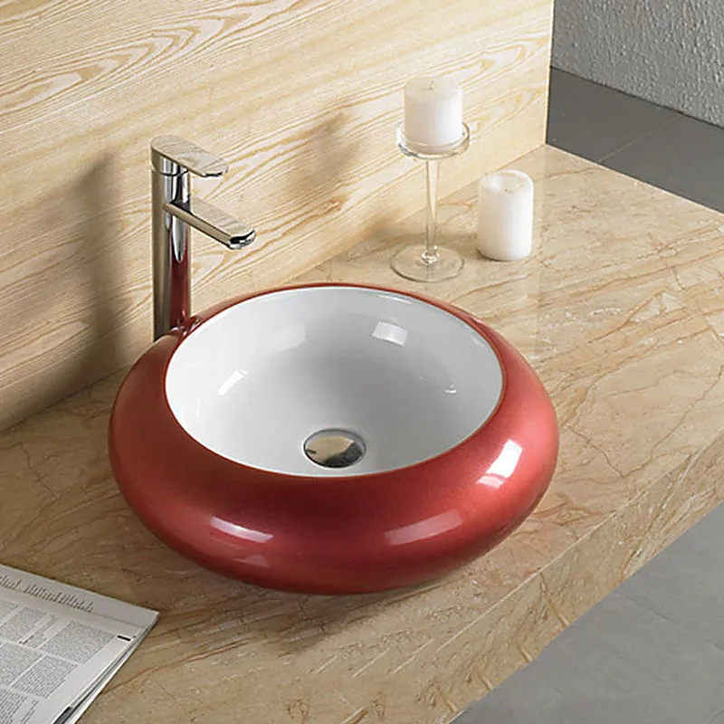 Bathroom Countertop Sinks Ceramic Wash Basin Red Lavamanos Round Art Basin Hotel Toilet Basin Household Shampoo Basin with Drain