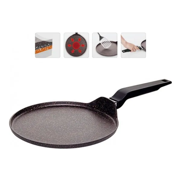Тип дна из нержавеющей стали Комплектация сковорода для блинов Мытье в посудомоечной машине да Материал кованый алюминий Материал ручки бакелит Типы плит все, включая индукционные Тип сковорода блинная Использование металлических аксессуаров да Диаметр 25 см Тип ручки несъёмная Наличие крышки нет Форма круглая Цвет коричневый Серия Kosta Использование в духовке нет Отметка литража нет Внутреннее покрытие антипригарное Страна производитель ЧехияВНЕШНИЙ ВИД ТОВАРА